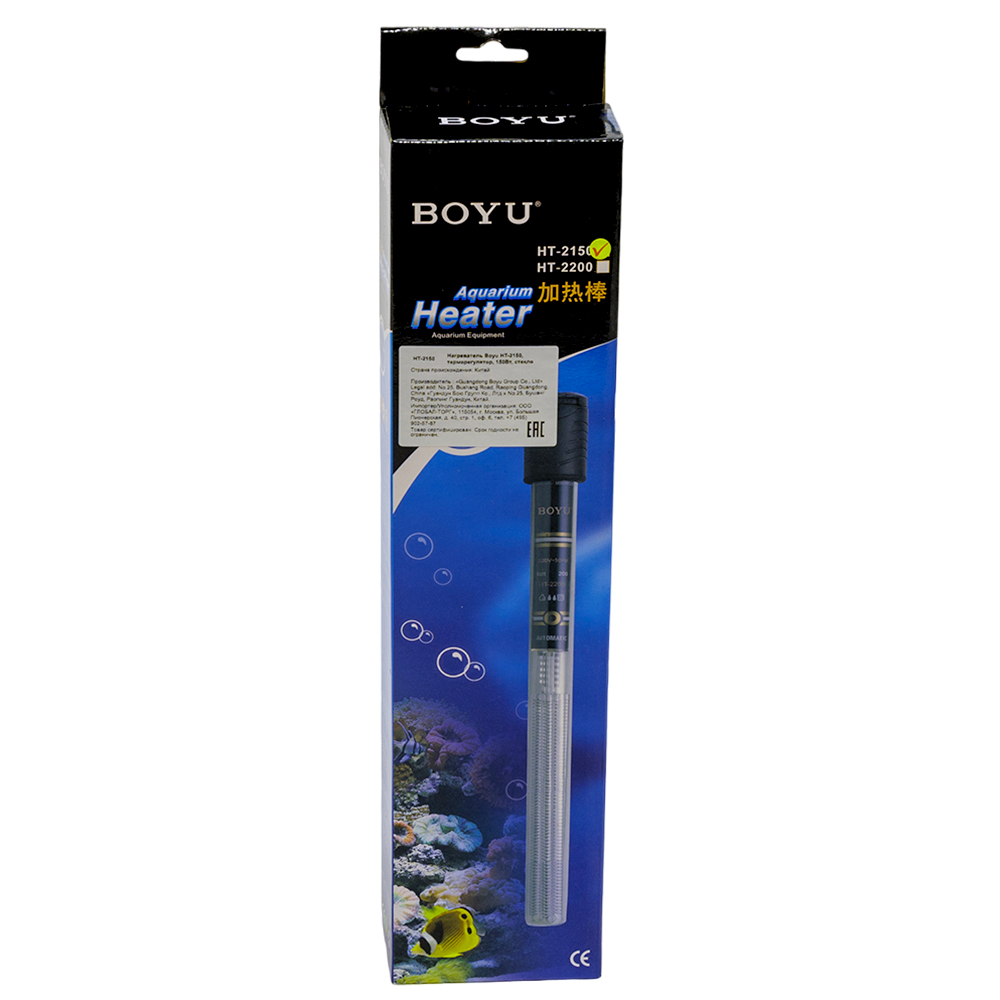 Нагреватель для аквариума Boyu HT-2150 – профессиональное решение для содержания аквариумных рыб и черепах. Стеклянный нагреватель с терморегулятором идеально подходит для аквариумов объемом 130-190 литров, обеспечивая стабильную температуру воды.