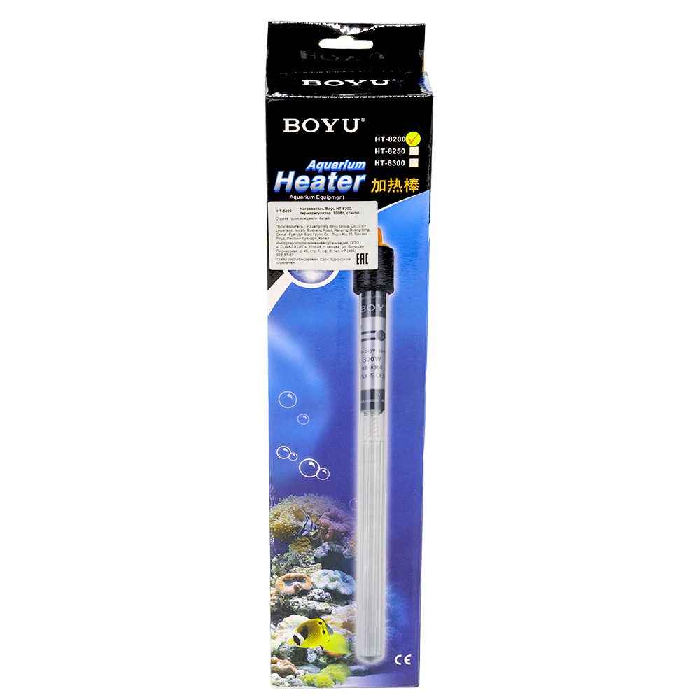 Нагреватель Boyu HT-8200 для аквариума с терморегулятором для пресной и морской воды, обычное стекло. 220V, 50Hz. Для аквариумов 190-250 л.