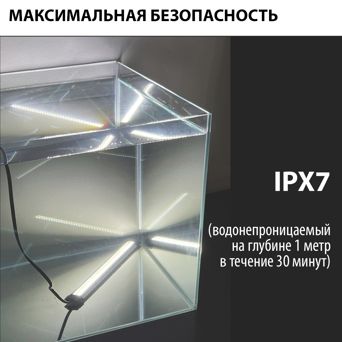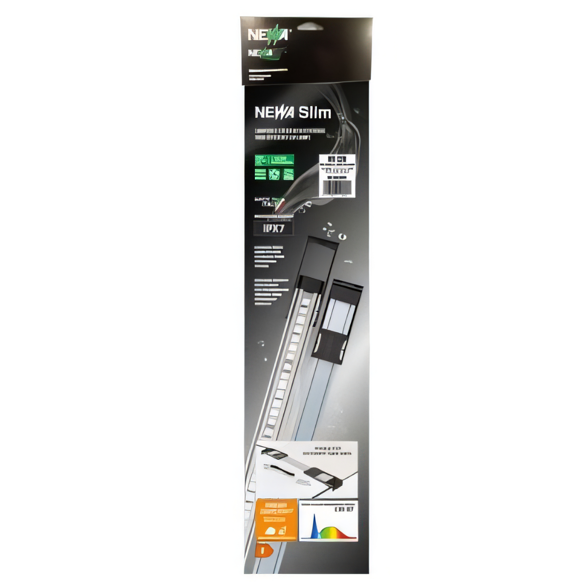 Все светильники NEWA SLIM LED (как дневного света, так и для растений) можно использовать под крышкой аквариума благодаря их классу защиты IPX7. Рейтинг защиты IPX7 означает, что устройство устойчиво к кратковременному погружению в воду. Устройство с сертификацией IPX7 может выдерживать погружение в пресную воду на глубину до 1 метра на срок до 30 минут без повреждений.