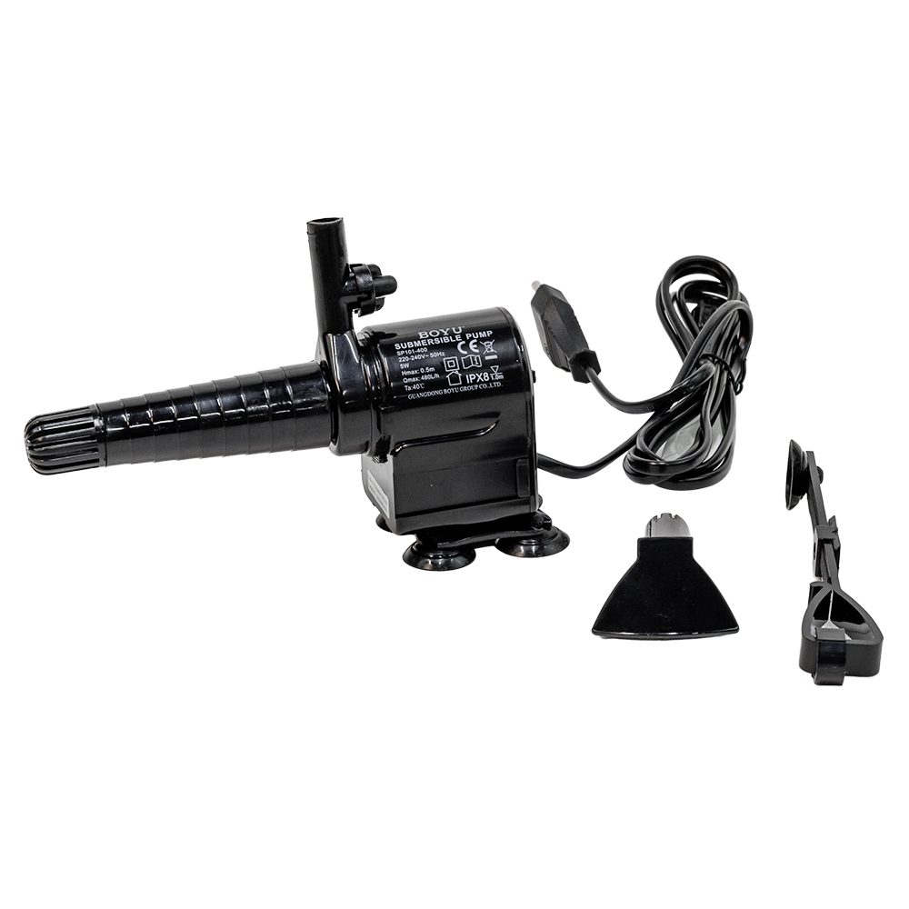 Погружная помпа Boyu SP101-400 для аквариума служит для циркуляции или очистки воды (если на нее надеть фильтрующую губку, в комплект не входит). В данной аквариумной помпе собраны все возможные преимущества: возможность подачи воздуха с помощью диффузора, регулировка потока, удобное дополнительное крепление на стенку, второй выход с заглушкой для разделения потока воды, поворотный носик для изменения направления потока воды.