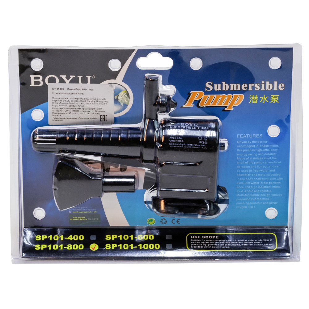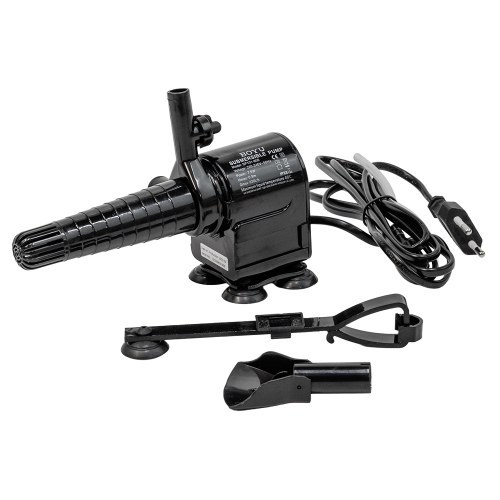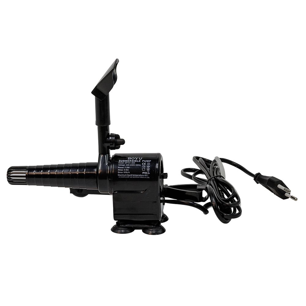 Погружная помпа Boyu SP101-800 для аквариума служит для циркуляции или очистки воды (если на нее надеть фильтрующую губку, в комплект не входит). В данной аквариумной помпе собраны все возможные преимущества: возможность подачи воздуха с помощью диффузора, регулировка потока, удобное дополнительное крепление на стенку, второй выход с заглушкой для разделения потока воды, поворотный носик для изменения направления потока воды.