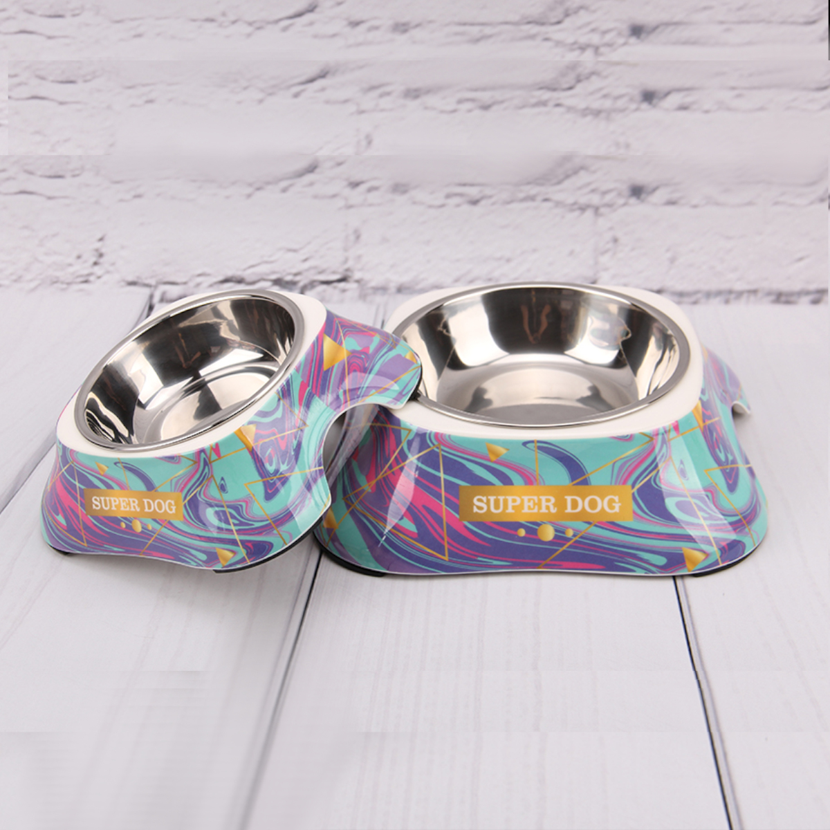Подходит как для воды, так и для корма, специальные ножки с резиновыми накладками предупреждают скольжение. Миска устойчивая, благодаря расширяющемуся основанию. Оригинальный принт и разнообразие цветов.