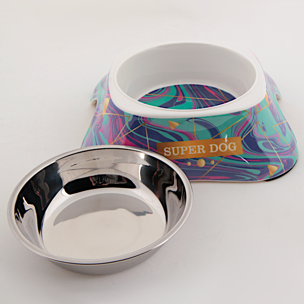 Миска из нержавеющей стали на подставке из меламина A5, 20x21x6 см, цвет голубой с надписью Super Dog. Миска на подставке идеально подходит для домашних животных, собак и кошек. Блюдце из нержавеющей стали вынимается, что очень удобно при мытье миски.