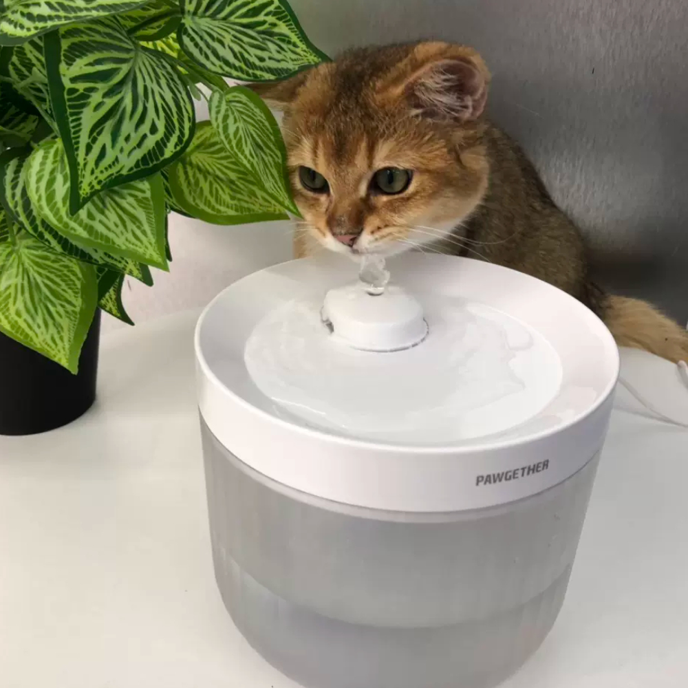 Автоматическая поилка фонтан Pawgether P200, белого цвета, объёмом 2,3 литра для кошек и собак. Сменный фильтр обеспечивает постоянную свежесть воды. Фильтр с картриджем из полипропиленового хлопка, который эффективно удаляет примеси, активированный уголь, входящий в состав сменного картриджа, снижает количество общего органического углерода в воде, избавляет от ионов кальция и магния, других тяжелых металлов.