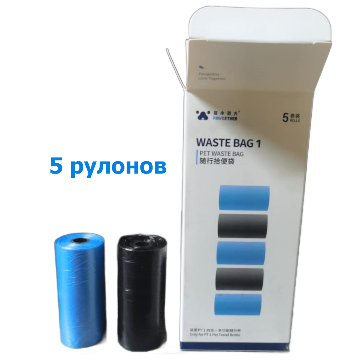 Пакеты для выгула собак гигиенические Pawgether - это набор из 5 рулонов, специально предназначенные для многофункциональной дорожной бутылки PT1 (4 в 1). В 1 рулоне 20 шт. пакетов. Полиэтилен.