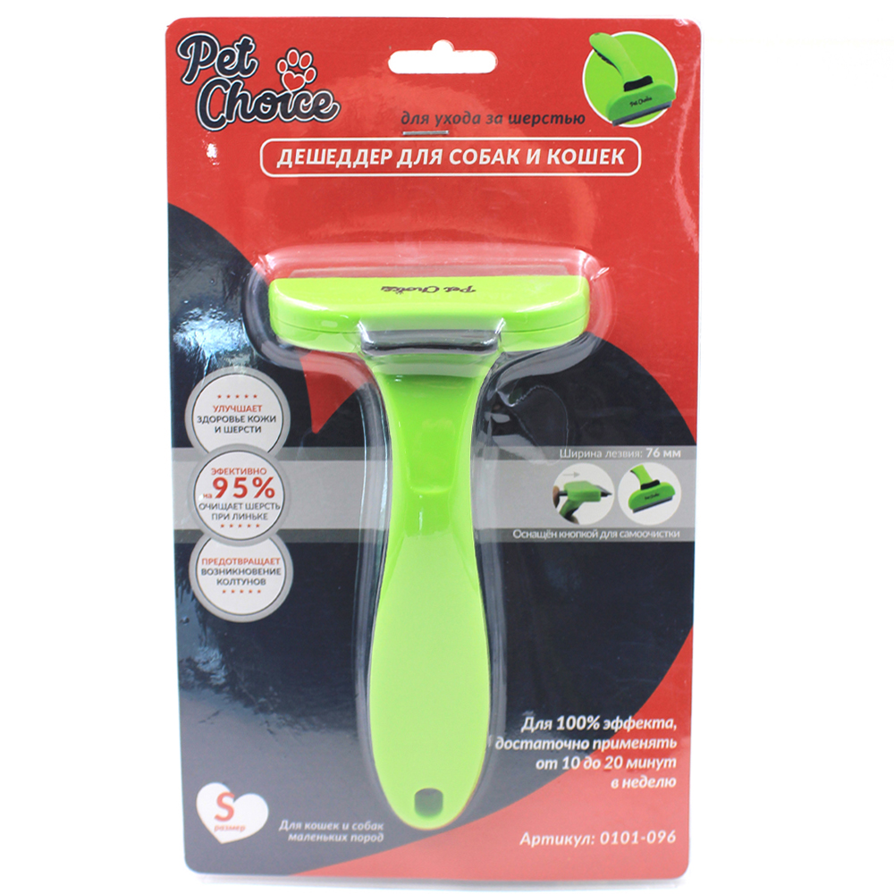 Дешеддер с прямым лезвием 76 мм предназначен для вычёсывания слабо прикреплённого подшёрстка животных. Уникальное лезвие захватывает и вытаскивает мёртвые волоски подшёрстка до их выпадения, сокращая линьку на 95%.