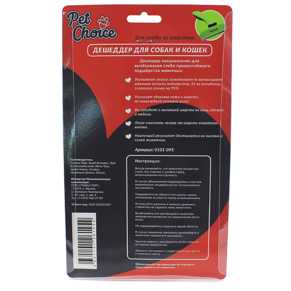Дешеддер с прямым лезвием предназначен для вычёсывания слабо прикреплённого подшёрстка животного. Уникальное лезвие захватывает и вытаскивает мёртвые волоски подшёрстка до их выпадения, сокращая линьку на 95%.