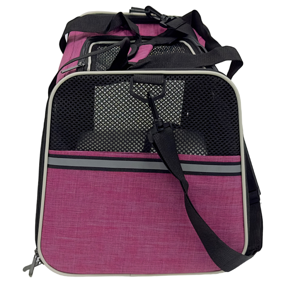 Безопасность в путешествии: светоотражающие элементы на сумке делают вас и питомца заметными в темноте.