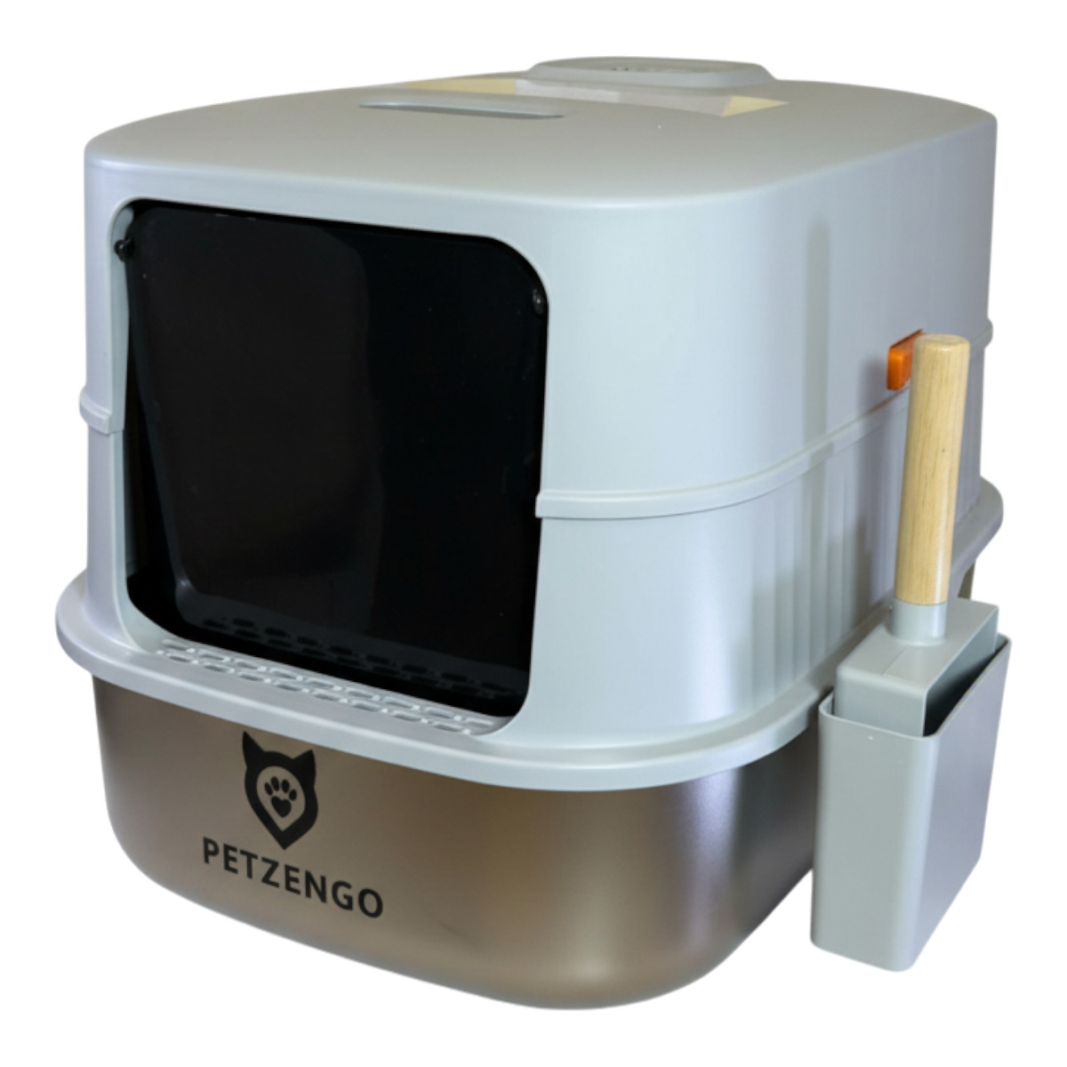 Умный туалет-домик с дезодорацией для кошек Petzengo PL-1 из нержавеющей стали — идеальное решение для заботливых хозяев, которые ценят чистоту, комфорт питомца и простоту ухода.